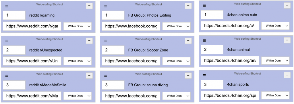 So, for example, you can assign the URL of each board to the Action field of a number key, but limit the action option to Within Domain, so that even the same number key can only work on that website.